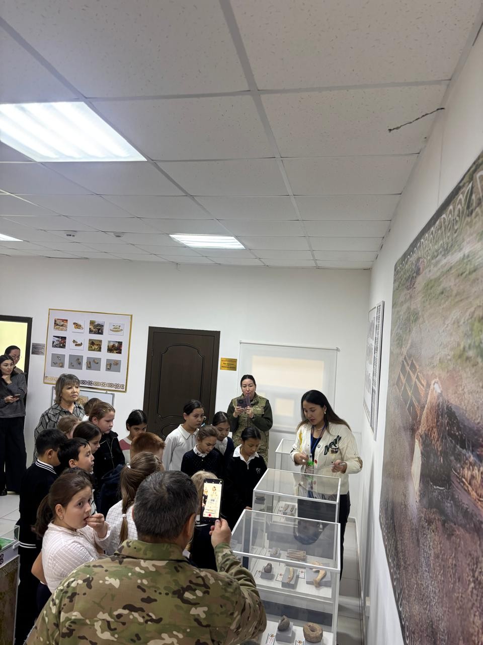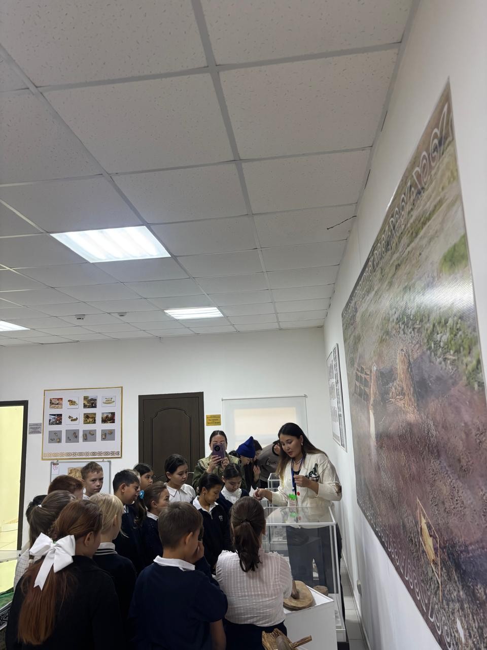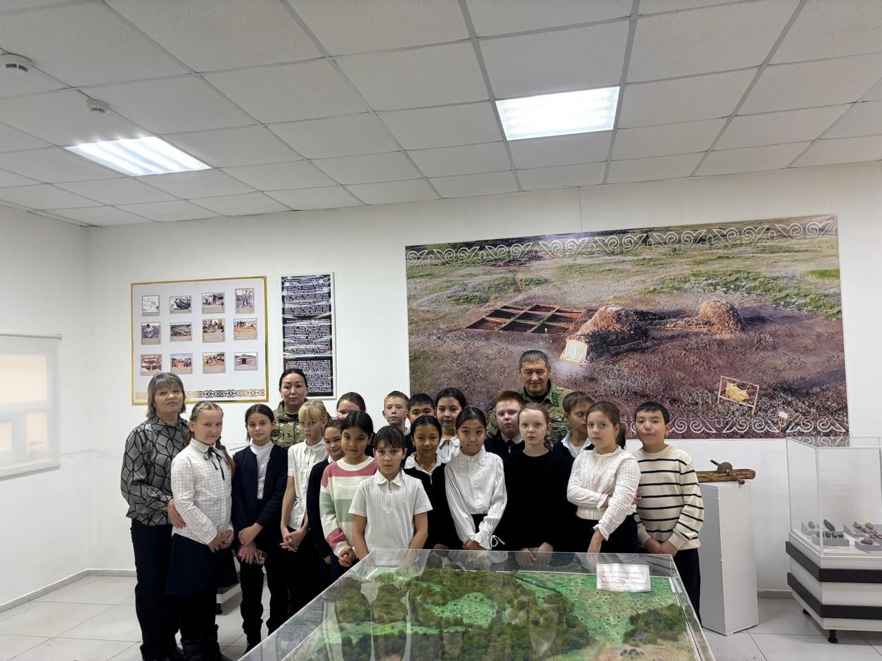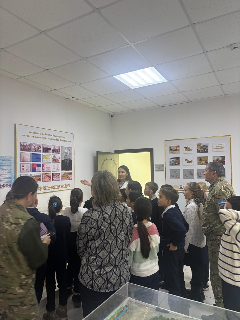 On November 27, students of the 4th "A" class of Saumalkol Secondary School No. 1 came to the Botai Museum-Reserve. The children were given a tour of the museum's exhibition hall, where they got acquainted with the tools of the Botai culture, household items and archaeological finds.