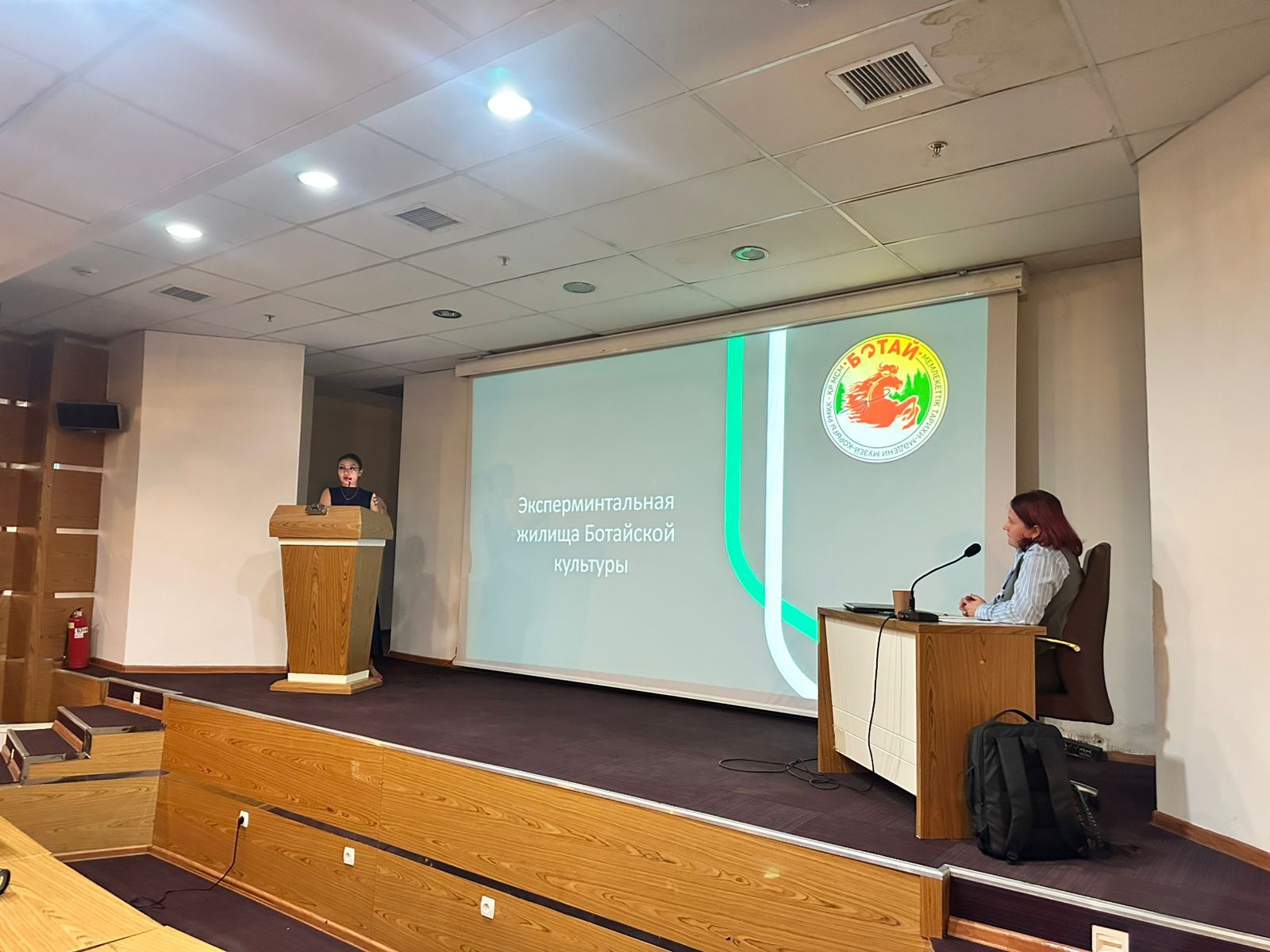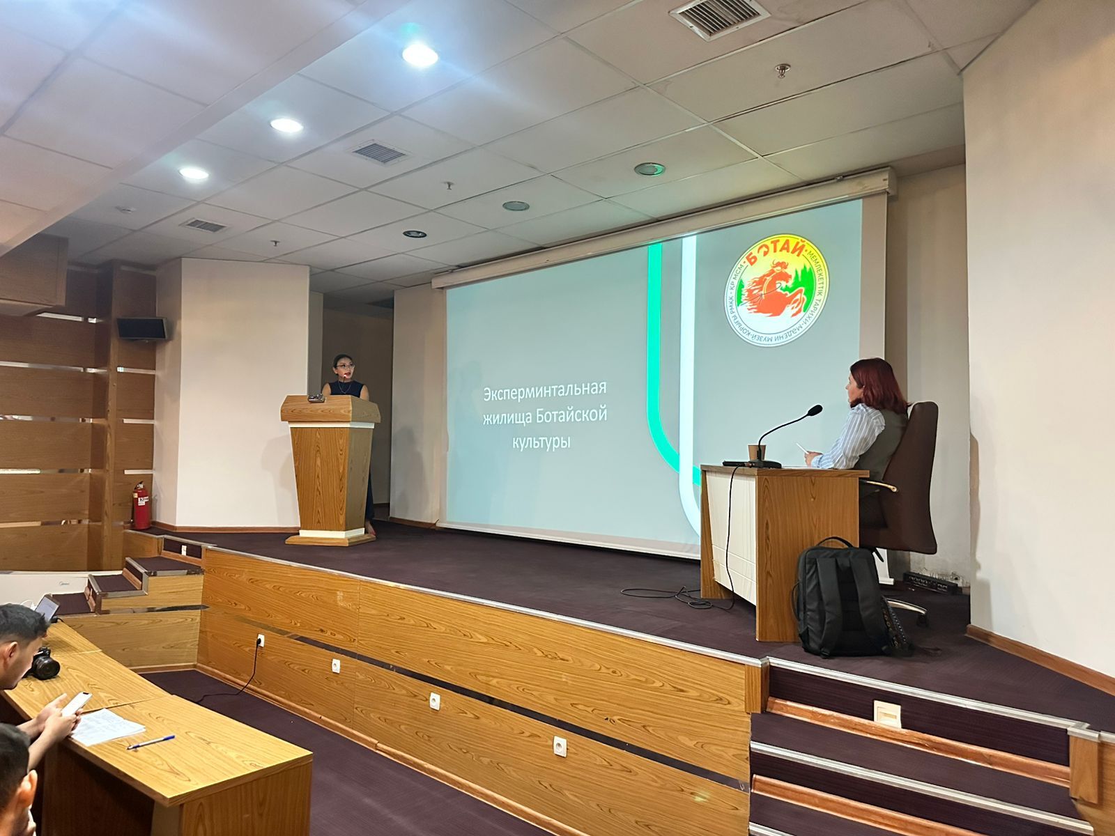 Sabina Karimovna made a presentation on "Experimental dwellings of the Botai culture" during the final conference. During the presentation, she spoke in detail about the lifestyle of the Botai culture, the peculiarities of the construction of residential buildings and their compliance with archaeological data.
